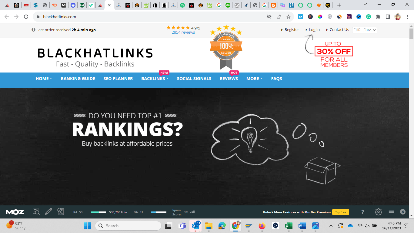 High Ranking: Boasts a high ranking, implying potential benefits for improving website rankings through their backlink services.